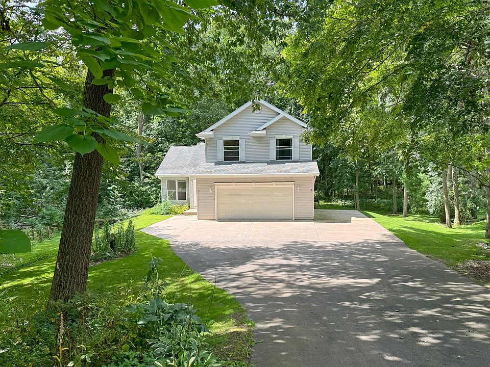 Fantastic 1.66 acre wooded lot on a cul-de-sac with modern 2 story home with a fully exposed lower level.