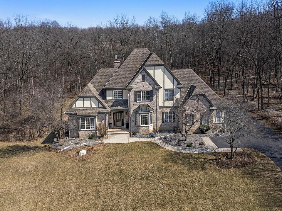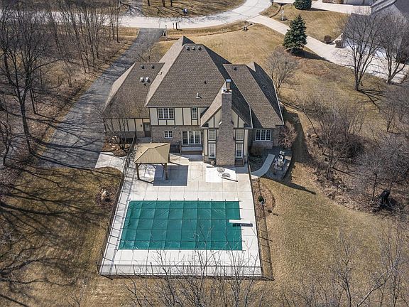 Enter this executive style home through the massive foyer to the 2-story GR w/ floor to ceiling gas-lit, woodburning FP & a surround of windows w/ views of the heated inground pool (w/ automatic pool cover), large patio space, & beautiful backyard. Formal DR w/ pocket doors. Chef's KIT w/ granite counters, double ovens, 6 burner stove w/ Viking hood, large island w/ prep sink, pantry, & mudroom. Spacious master suite w/ tub, walk-in shower, double vanities, & oversized closet w/ built-ins. Finished LL w/ family room, gas fireplace, half bath & workout room. Multi-zoned in-floor heat throughout the whole home - even the 3-car attached garage. Additional features include 2nd floor laundry room, massive storage, walk-in attic space & 1.5 acre lot that abuts many acres of woods.