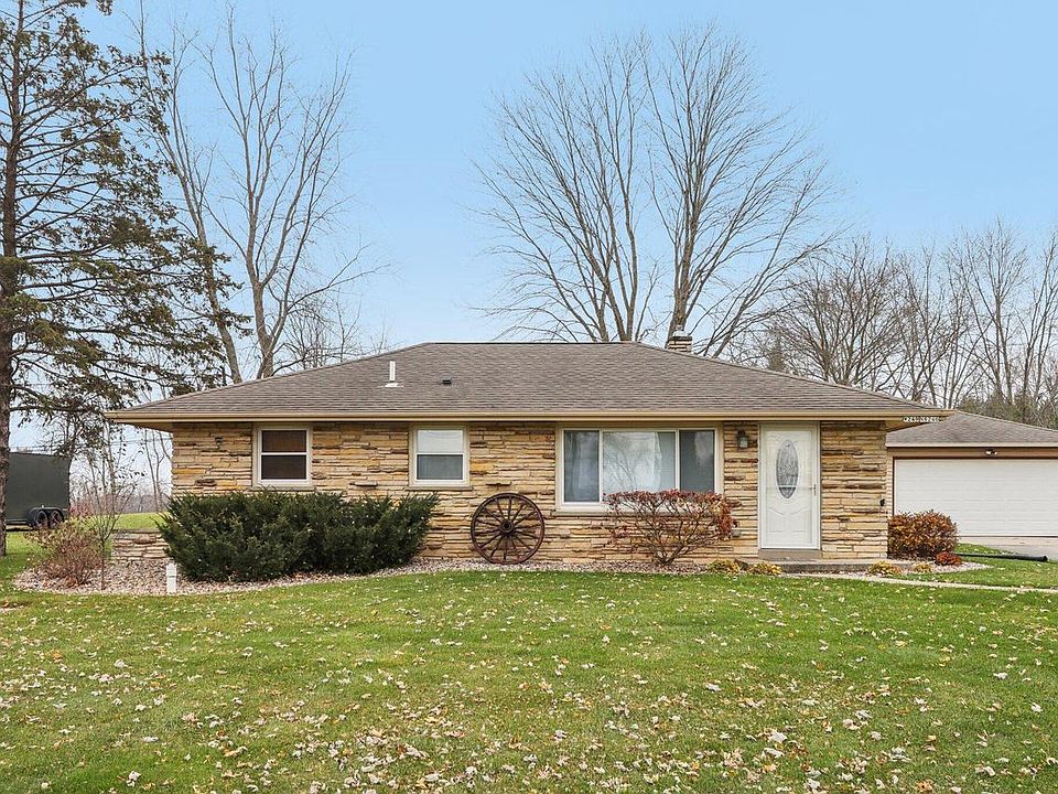 This charming Lannon Stone ranch blends comfort, privacy, and freedom on a one-acre lot in the sought-after Hamilton School District. Warm hardwood floors flow throughout, highlighting 3 cozy bedrooms, an updated kitchen for easy everyday living, and a beautifully renovated full bath. The finished lower level offers flexible space with a wet bar--ideal for entertaining, movie nights, or game time--plus room for an office, workout, or play area. Outside, enjoy no subdivision restrictions--just open space for bonfires, gardening, play, or hobbies. A detached 2.5-car heated garage and additional storage shed provide plenty of storage. Newer mechanics - see Additional Property Info sheet for more details! Enjoy a country-like setting with the convenience of a great location.