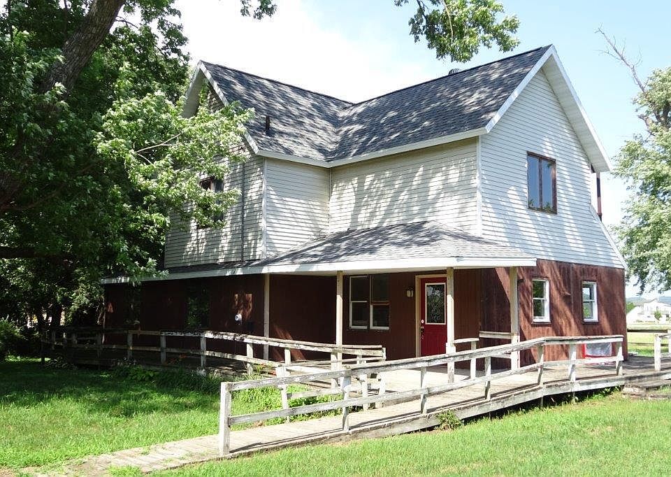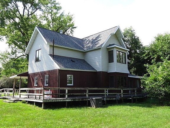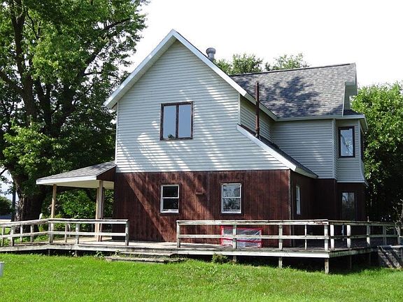 A sizable home with lots of potential! 4BD 2BA has an excellent floor plan featuring 9' foot ceilings in the spacious kitchen and dining area and large living room with fireplace. Bedrooms and bathrooms on both levels, and main floor laundry. Main floor primary bedroom has huge rough in bath, ready to finish. Brand new architectural shingles, fascia, and soffits in 2025. Huge wrap around deck, maintenance free vinyl siding. Beautiful, level, nearly 3 acre lot decorated with mature trees. Paved drive leads to insulated 24 x 34 detached garage. Located in Hwy 35 offering an easy commute to La Crosse or Winona for additional amenities.