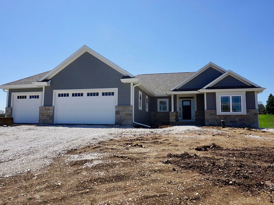 New 3BR/2BA Ranch on a quiet cul-de-sac located in Lisbon's River Glen subdivision. Settled on a .69 acre lot with partial basement exposure. Desirable Hamilton School District. 3 car garage. 1st floor laundry/mud room. 9' ceilings throughout. Tray ceiling, gas fireplace & built-in cabinets in living room. Sleek modern kitchen with massive center island & granite countertops. Walk-in pantry. Cozy office nook with built-in desk offers privacy when needed, would be a great spot for kids to do homework. Large master with walk-in closet & private ensuite. Double sinks in the hall bath as well. Open staircase leading to the lower level. Tons of potential for future rec room, 4th bedroom & another full bath. Come see it today!