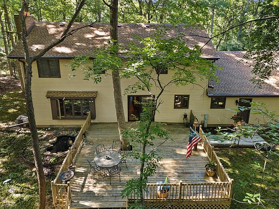 Welcome to this Tudor-style two-story home in Lisbon's desirable Thousand Oaks subdivision. Nestled on 1.1 acres of wooded privacy, it offers character, space, and peaceful surroundings.The main level includes all the spaces you want--inviting living room, cozy family room, formal dining room, bright kitchen--plus convenient first-floor laundry. Upstairs, the primary suite has a walk-in closet and private ensuite bath, along with two spacious bedrooms. The lower level features a rec room for hobbies, play, or future updates.A spacious deck is ideal for morning coffee or evening gatherings, overlooking the private backyard where wildlife is often seen. Lovingly maintained, this home blends comfort and privacy with room to make it your own.