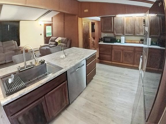 Check out this 2 Bedroom 1 Bathroom ranch home located on 3.18 acres of wooded land on a dead end road just a stone's throw from the Fox river with a public boat landing just down the street. The interior of the home has been extensively remodeled with LVP flooring, complete kitchen remodel including cabinets, new tops, a farmhouse sink and stainless steel appliances that are all included! Lower Level includes laundry hook-ups and plenty of space with potential of being converted into more living space. If you have extra toys or want a workshop you will love the attached 2 car garage AND the detached pole shed with electricity and a gravel drive leading back. Just a little TLC left to be done with the back deck and the siding. 2 Sheds, updated electrical and plumbing. Showings begin 1/10.