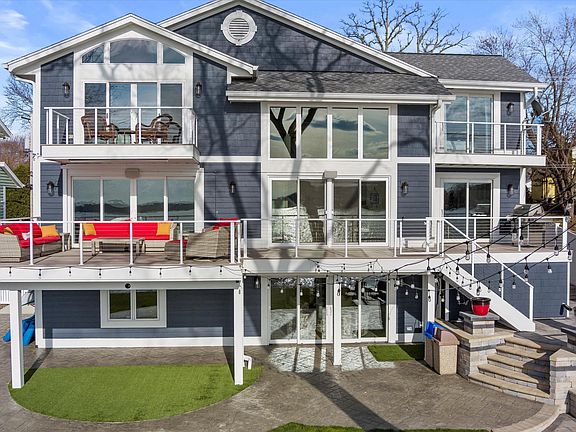 Gold Coast! 70 feet of prime western exposure frontage on the best side of Pewaukee Lake. The spectacular floor-to-ceiling windows of this home give the sensation of living directly on the water with 180 degree westerly lake views from every living space. No expense was spared in designing and remodeling this coastal masterpiece in 2018. The primary suite; think 5 star hotel: beverage center, custom marble, heated floors, 2 story walk-in custom-built closet and 2nd laundry station. Enjoy your morning coffee or evening cocktail on one of three decks or relax on the $50,000 custom Summerset pier. Two-car heated garage, plus spots for 7 cars in the drive and ample street space up the hill lakeside. Indoor sauna and outdoor shower with hot water. Low maintenance condo style living.