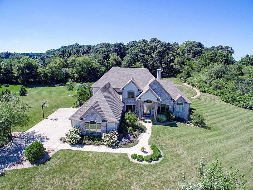 This regal home in the Walnut Grove neighborhood has just come to market. It is masterfully designed and sits on 3.65 acres with a fantastic deluxe outdoor entertaining space featuring a pool, patio and outdoor kitchen with pergola and lush landscaping -- such a beautiful setting, including plenty of privacy with the lot backing up to the woods. The home has 5 bedrooms with the master suite with spa-like bath located on the main floor and an expansive open floor plan with a two-story great room adjoining the gorgeous custom kitchen with massive island and counter bar to gather around. All the design details and luxury touches bring this nearly 6,000 sq.ft home to its full stature. Enjoy the best of Lake Country right here!