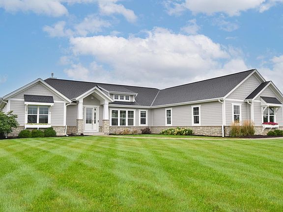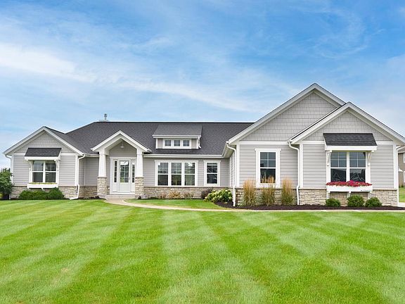 Stunning Custom Built 4BR, 3.5BA split ranch in Twin Pine Farm with Arrowhead/Merton Schools! Nestled on a private 1-acre cul-de-sac lot. Step inside this beautiful home offers an open layout with soaring 13' cathedral ceilings, and natural light. The spacious GR is big and bright with a lovely shiplap gas FP. The gourmet chefs kitchen steals the show offering quartz counter tops, marble backsplash, custom maple cabinets, oversized island & SS appliances. Luxurious primary suite with 2 WICs, soaking tub, dual vanities & large marble shower. Finished LL boasts rec room space plumbed for future bar and ready for your additional entertaining ideas, gym, 4th BR, full bath plumbed for steam shower. 3.5-car GA + spacious private backyard oasis.