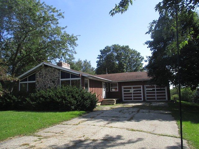 Country Home with beautiful views! Living room with vaulted ceiling, stone wood burning fireplace and large windows. Kitchen with dining area and formal dining room leading to deck. 3 bedrooms, master with bathroom. Full basement and attached garage. Property needs some updates/maintenance but has great potential.