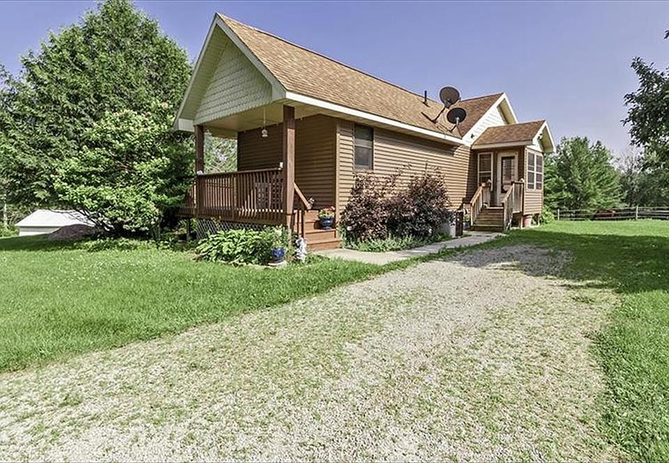 Porterfield coutry ranch home with horse barn on 9.5 acres! Secluded, turn-key and updated! Completely redone in 2005 with quality finishes. Updates include roof, siding, electrical, windows, plumbing, plaster, kitchen, bath, and flooring! Owner's suite. Horse barn with water, a second barn, and heated detached garage/workshop. Walk-out lower level with family room. Large deck with patio door for entertaining. Rolling, wooded acreage.