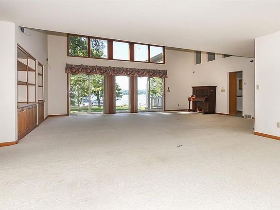 Btfl secluded custom built home on over 1.5 acre wooded lot w/100' of level lakefront! Prvt road leads 2 long driveway approach! 24x32 outbuilding 4 boat/toy stg! Huge 2-sty great rm w/wall of windows & built-ins! Bright eat-in ktchn w/oversz island, plan desk, vltd clngs & sldr 2 cstm deck! FR w/solid brick fireplace & recessed lighting! Spac 1st floor mbdrm w/garden bath w/hot tub & sep shower! Huge loft w/skylights overlooks great room & has great views! Good sz secondary bdrms! Convenient 1st floor lndry! Full unfin bsmnt w/endless possibilities! Prvt pier! Serene setting! Estate sale!
