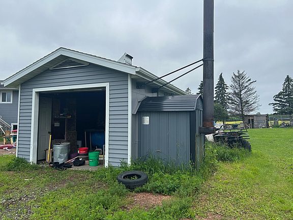 The property cannot be shown until July 6th 2024. Drive up through a tree lined driveway to a 4 bedroom 2 3/4 bath home with a two car heated attached garage. Each floor of the home was in floor radiant heat. Large pole building with a 22x32 heated workshop in it. There is also a nice shed for wood for the outdoor wood stove. The basement has 2 bedrooms, hot tub in an area, bathroom, large area to put another living room or game room , many options and it's a walk out basement. The land is being farmed at the moment until the soy bean season is over and after cutting the other field for hay.