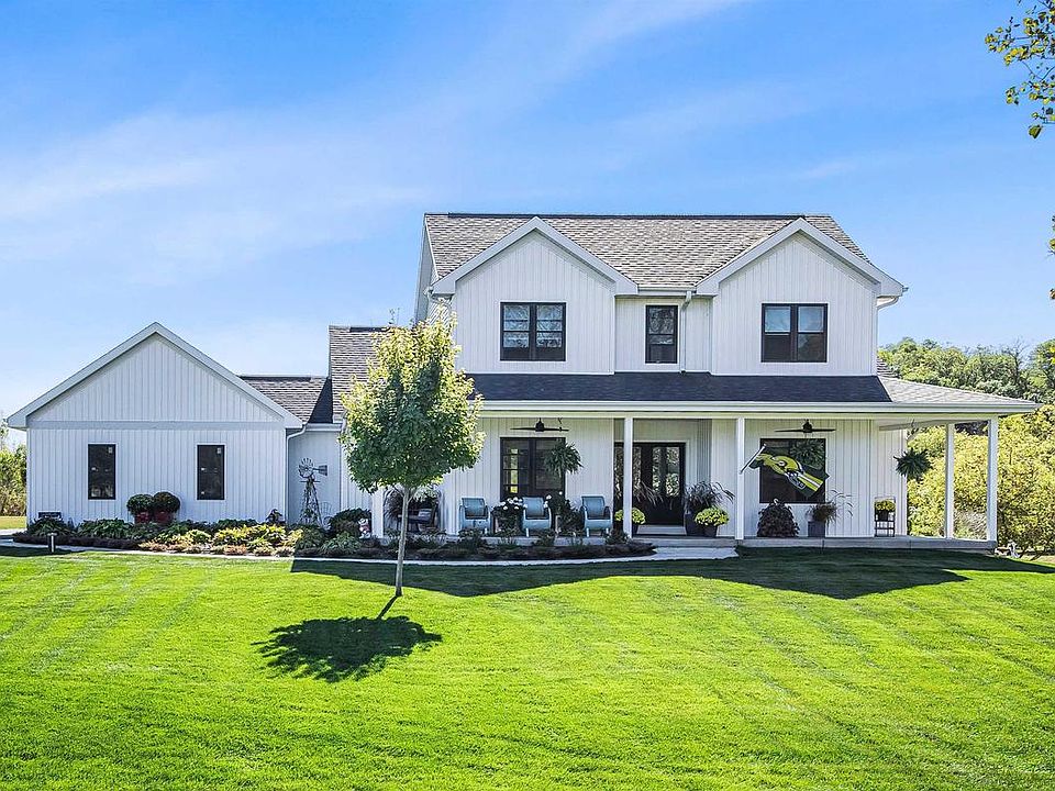 You can have the Sugar River in your back yard. Discover your dream home on a private 1.67-acre bordering the Sugar River area. This stunning modern farm house style home is a well-appointed beauty boasting a 2 story great room, 2 story authentic barnboard fireplace as the center of the home, open concept to dining/kitchen areas, perfect for modern life and entertaining, main level owner's suite with walk in shower, main level laundry and 2 bedrooms upstairs offering separation and maintaining the open concept with balconied hallway. Lower lever is never ending with huge entertaining space and possible 5th bedroom. Located in a country subdivision, enjoy a serene, suburban feel within the desirable Belleville community, known for its small-town charm. See it today or at Open House on 10/19