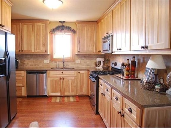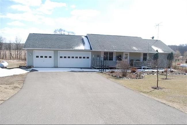 Immaculate Ranch on three acres. Gorgeous eat in kitchen has new custom hickory cabinets, quartz counters, tile backsplash and stainless appliances. Living room features beautiful laminate floors. Two and a half baths have all been updated. Large master suite has two walk-in closets. Mudroom. Walkout basement has family room, game room, guest room, half bath and hobby room. Cedar garden shed. Upper and lower decks. 3 car garage. Covered front porch to enjoy the country view.