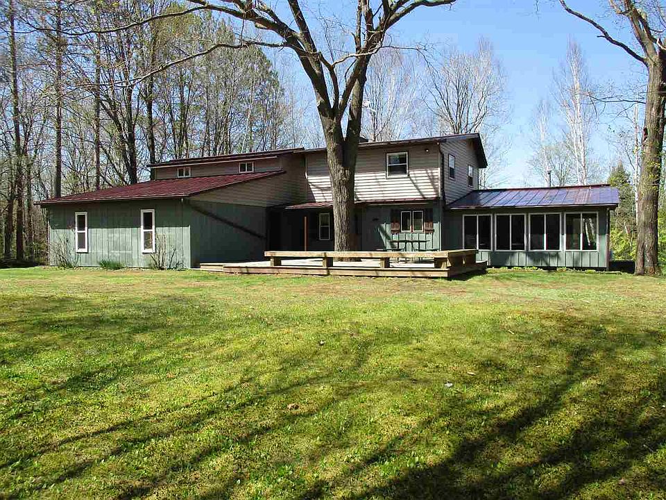 Exceptional 2+ bedroom, 1.5 bath home or cabin on beautiful semi-private North Harper Lake. Kitchen with breakfast bar open to dining/living room with wood burning fireplace. Spacious tongue and groove finished 4-season sun room. Main floor laundry. Two upper level bedrooms. Detached garage with workshop and upper level bonus room. Additional detached garage. Large deck system and yard with fire pit and woodshed. Updated metal roof. New lp boiler and plumbing. +/-115 feet of sandy frontage on North Harper Lake. North Harper Lake is approximate 55 acres with a max depth of 35 feet and known for excellent water quality and great fishing for panfish, walleye, northern pike, bass and musky. The refrigerator, stove, dishwasher, washer, dryer, window treatments, garage refrigerator and dock are included in the sale price.