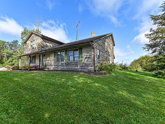 This four-bedroom home is perched atop a hill on 9.45 acres, offering sweeping views to the north. The main level features a spacious kitchen and a dramatic two-sided, floor-to-ceiling stone fireplace. A full bath, bedroom, and office are conveniently located on the first floor.Equestrian enthusiasts will appreciate the impressive 34-stall horse barn, complete with individual water to each stall and a large indoor riding arena. The heated main aisle and overhead heat in the second aisle ensure year-round comfort.The property requires updating and is being sold in as-is condition, presenting a rare opportunity to create your ideal home and equestrian retreat.