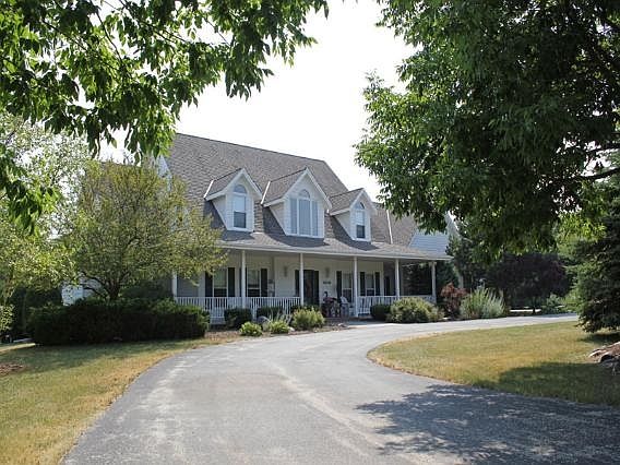 Private-open concept-captivating Cape! Stunning gourmet kitchen, pantry,Jenn Air stove, Char Glo grill, commercial range hood, double oven, hardwoods and patio door leading to deck! Great room with wet bar, fieldstone fireplace, cathedral ceiling and patio door access to deck! First floor master suite with walk-in closet, gas fireplace, built-ins and master bath featuring double sink, whirlpool, multi-head ceramic tiled shower stall. Entertain your family and friends in style