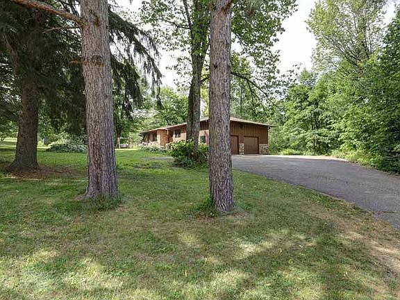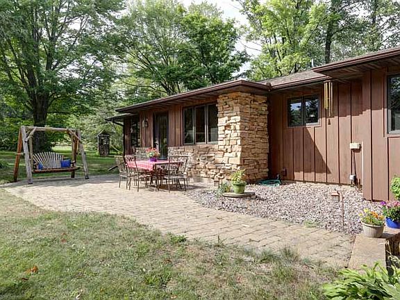 Exceptional curb appeal w / patio / cement slab, private setting w / mature trees (apple & cherry), landscaping & beautiful gardens, optimally set back from the road. Tasteful combination of updates & charm, hickory kitchen cabinets w / under cabinet lighting, island, stainless appliances, open-concept main level w / hickory trim & hardwood flooring, main level laundry, living room w / tongue & groove feature wall, walkout basement w / 2 storage areas, recently added full bath (2017), newer furnace (2008). Other features include solid 6-panel doors throughout, modern accents / lighting, 2-car attached garage with additional half bath w / ample garage storage, and a cement slab that could be used for a parking or an outdoor sports court. Home currently has a conventional septic system that sellers are converting to two 2,500 gallon holding tanks before closing. Updated main level bath counter, sink and fixtures (July 2018).