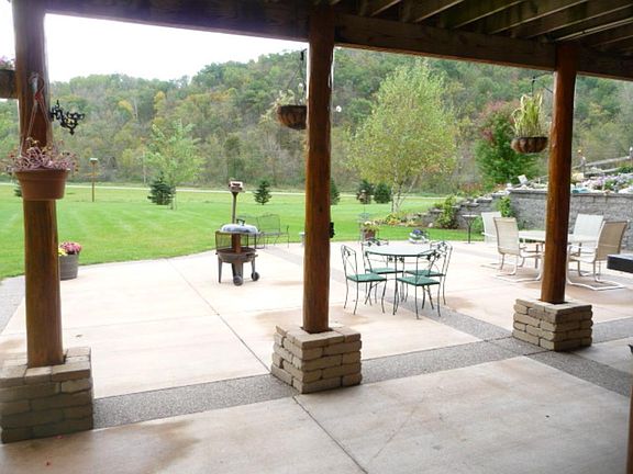 Private 22+/- Acres in PRIME Pierce County Deer & Turkey hunting territory boasts a beautiful & spacious 4BR/3BA log sided home! Quality built in 2004 with 2224 finished sq ft above ground and 1800 on the lower level walkout! Attached 2 Car 28x30 finished garage plus two utility sheds: 12x18 and 8x12. Living room is highlighted by the vaulted Knotty Pine ceiling with recessed lights, Maple floors, stone faced fireplace with wood burning insert, Southern exposure wall of windows, log details and open staircase to upper level loft! Nicely sized kitchen features lovely granite tops, big center island, gleaming Maple floors, ample cabinetry and pantry with Cherry inserts, recessed and pendant lighting. Dining room offers the same Maple flooring. Main floor Owners suite includes a WI closet, carpeted bedroom area, bath w/slate tile floor, claw foot tub and separate glass block shower. Second main floor bedroom is currently set up as an office; second full bath also has tiled flooring. Main floor laundry provides a tile floor, lots of Oak cabinetry and includes the washer and dryer. Finished lower level walk-out offers carpeted family room with stand-alone gas fireplace, rec room, two carpeted bedrooms, office/sewing room & full bath. Living room leads to the inviting 10x36 deck with gret views; lower level family room walks out to the 30x42 concrete and aggregate patio with views! Forced air metered LP furnace w/humidifier; in-floor hot water heat; 200 AMP breakers; air exchanger; central vacuum; security system; 2 water heaters; kitchen appliances; freezer; water softener; poured basement; Pella windows. Landscaped yard and heavily wooded parcel (approx. 16 acres of entire 22 Acre parcel) is just a 1/2 mile to scenic Rush River, a Class A trout stream, 3 miles to local snowmobile club or two miles to Vino in the Valley! Ellsworth: East on State Rd 72 (Approx. 5 miles), Right (South) on 450th Ave (Approx. 2 miles), Turns into 465th Ave (Approx. 2.5 miles) to Property on Left.