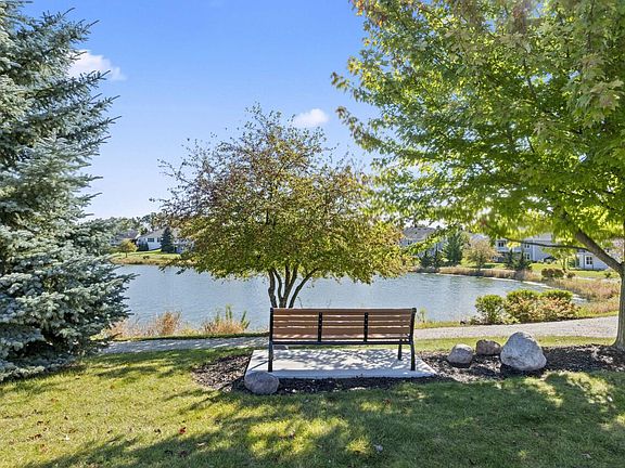 Grand and gracious would not overstate the ambience of this detached, ranch-style home. Views of Bay Pointe pond welcome you to condo living. Natural light enters every room. Overhanging roof shelters your steps to the Great Room. Cathedral ceiling and corner fireplace inspire warm arrangements for gathering. French doors open to east facing den, capturing the water view. Modern kitchen island is situated to maintain informal meal times, with birds in view through the patio doors. High style chandelier accents formal dining. Pantry IS walk-in! Complement to the primary suite is the spacious WIC. Fully carpeted LL offers unlimited creative spaces for library, crafting, music, and more - plus a third bedroom, a full bath, and boundless storage. Bay Pointe Condominium is a community!