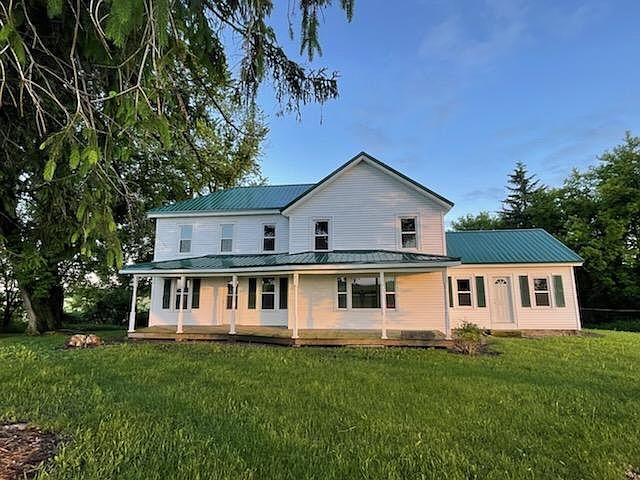 Country roads take you home to the country on this 3+- acres. Stunning sunsets, beautiful pastural setting, rich with wildlife. This classic farmhouse has a large welcoming covered front porch and concrete deck. 5-bedroom,1 bathroom, farm kitchen awaits your finishing touch. Peaceful county location.Some updates have been completed including: a new metal roof, new entry doors, vinyl siding, and vinyl replacement windows. There are 2 outbuildings on the property. Bring your ideas to make it your home.Electric needs to be hooked up, upstairs needs finishing.Seller is selling home and outbuildings as-is where-is with 3 acres+-