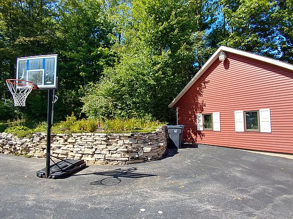 Beautiful, private, custom ranch home nestled into the woods. Huge great room with soaring ceilings, lots of windows, fireplace & patio doors to huge deck. Custom cabinet kitchen with lots of cabinet & counter-space. Natural wood floors and ceramic tile are found throughout the house. Master suite with a large WIC and private whirlpool bath. Entertainment sized deck, 3 seasons room & swimming pool. Attached 3 car garage w/dual entry to basement and also a separate garage w/workshop area. Plenty of room for all of your toys. 8.5 wooded acres w/Mullet River. Additional 3.5 available for $65,900