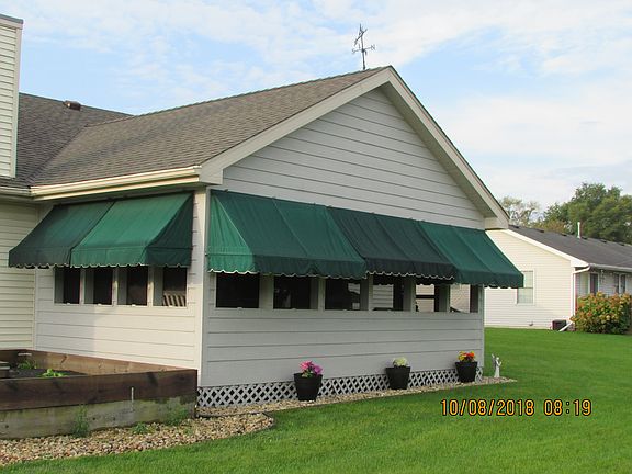 Home features on main floor includes open concept, vaulted ceilings with crown molding in living room, dining room & kitchen (2 pantries & granite counter tops), gas fire place, hardwood floors throughout, tile in foyer, bathrooms, kitchen & laundry area. Large Master BR w/walk-in closet and en-suite (walk-in shower & walk-in tub w/ jets). 2 bedrooms & full bath. Basement: 900 sq. ft. finished bonus room with egress window, approx. 1,200 sq. ft. unfinished w/half bath (plumbed for full bath). 3 car garage w/work bench & white peg board on all walls. 13x22 ft. 3 season screened porch w/canvas awnings and raised garden area.