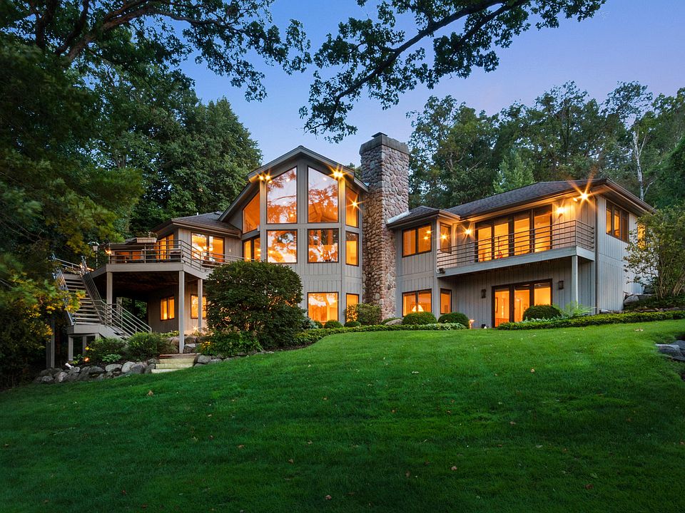200 feet of frontage on Geneva's Southern Shore & 1.5 wooded acres, this impressive well constructed 4 bedroom 4 bath home is waiting. Drive down the private drive & enter your quiet retreat. You will be wowed from the moment you step inside, full wall of windows, wide plank oak flooring, pine paneled vaulted ceilings & a stone fireplace overlooking the Lake in the great room that opens to a gourmet kitchen, dining area, and a lovely screened porch that walks out to the deck w/amazing views. Enjoy the 1st floor master suite w/sitting room & stone fireplace or work in your den w/serene views of the property. LL walk out has additional 3 bedrooms all with lake views & family room w/sliders out to patio overlooking the Lake. Pier w/double canopied Boat slips, sitting area,buoy & Boat house.