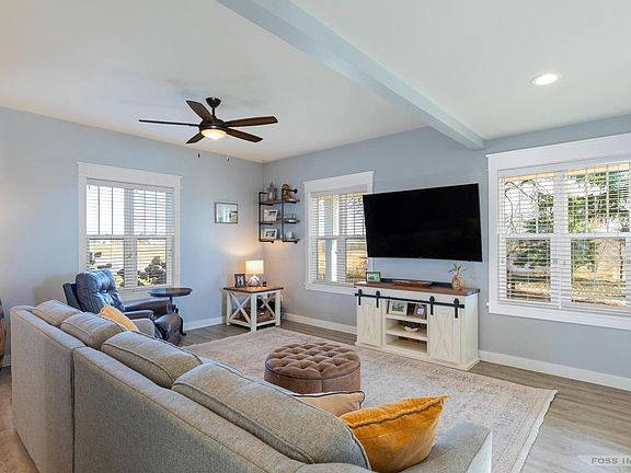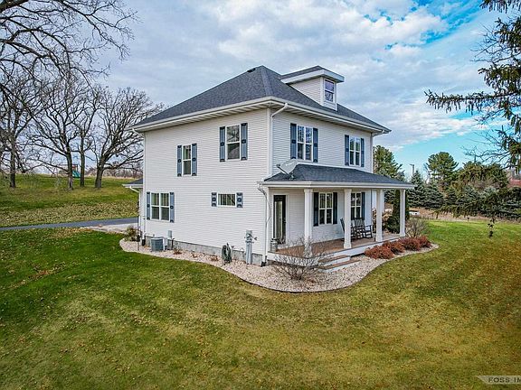 Beautifully updated home, fully remodeled inside and out in 2017, with new appliances and carpet in 2025. Sun-filled living spaces lead to a spacious kitchen with a large island. Enjoy first-floor laundry, a powder room, and a mud room. The primary suite offers a walk-in closet and full bath. Two spacious guest bedrooms share a bath with an oversized vanity. Outside features include a paved driveway, stamped patio, and fire pit for summer nights. Heated garage and a 62x35 barn offer great flexibility. All set on a property with views for miles, just a short drive to Madison.