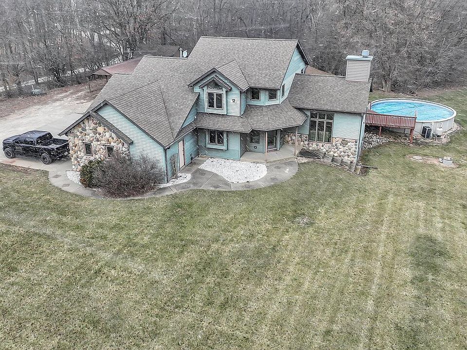 Welcome to your own little bit of paradise, this three bedroom 2.5 bathroom home sits on 3.80 acres and includes 12x16 shed and a 12x40 carport/covered parking area surrounded by mature trees. Main floor has primary bedroom and large bath, large kitchen with dinette area, beautiful great room with stone fireplace. Upper level includes loft for office area, full bath and two other bedrooms. Lower level is finished with family room including fireplace area and bonus room, also is plumbed for a full bath! Backyard includes deck, patio, pool and fenced in area! Zoning is A-5 & A-1.