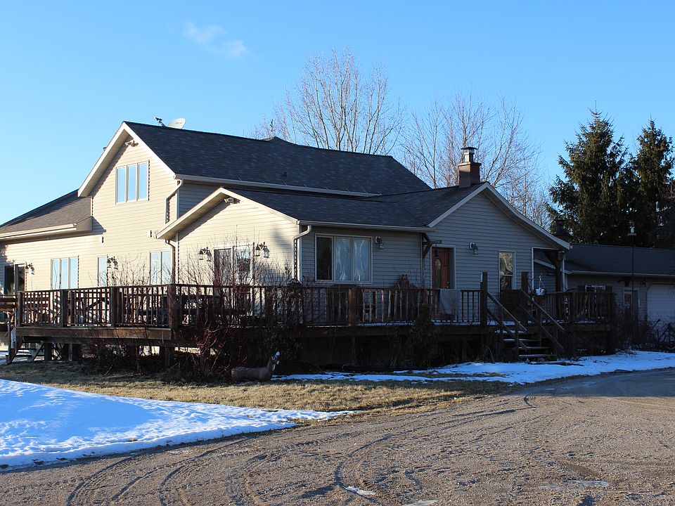 PRICED TO SELL!! Beautiful country home on 3 acres. Adjoining 25 acres recently bought by the Audubon Society. New 1500 sq ft addition in 2006. Floor-to-ceiling custom fieldstone fireplace in great room. Elevator from basement to bring up firewood. Open concept kitchen/dining room/great room with natural hickory wood flooring, butternut wood ceiling, and three 9x6 ft windows to enjoy the views of the Horicon Marsh. Deck off the kitchen with built-in seating. Wrap-around deck from master bedroom to front porch. Den with cozy woodburning stove. Main floor master bedroom. Master bath with corner whirlpool tub, separate shower, walk-in closet with stackable washer/dryer. 2 bedrooms plus an open loft upstairs. Central air, central vac. Private toilet and shower in basement. 2 car garage with attached finished room with a woodburning stove with custom fieldstone chimney. Outbuildings include original barn and silos, small 2 stall horse barn, and 2 storage buildings. Small pond on the property.