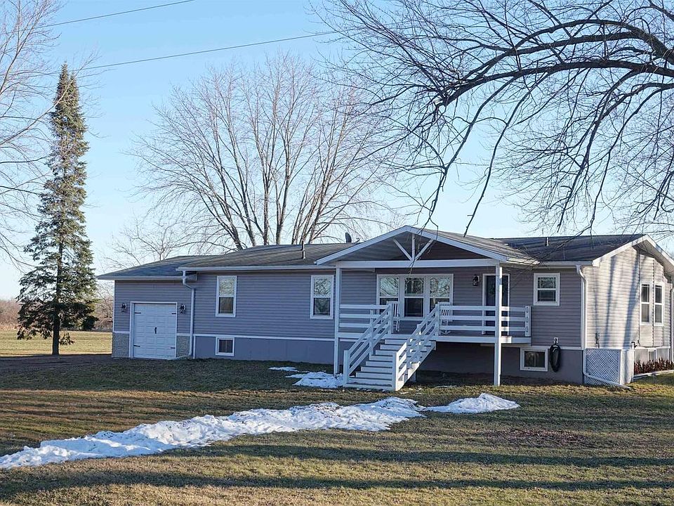 This beautiful and well maintained 1 story, 3 bedroom, 2 full bath home is just minutes from the City of Owen. Sitting on over 5 acres of land with a 3 car attached garage, this property offers plenty of room for the whole family. An open concept, main floor laundry, master suite with a large bath and walk-in closet and a comfortably sized family room are just a few of the features of this home. The full basement offers plenty of room for additional living space with egress windows for future expansion and stairs leading to the garage area as well. Enjoy central air and a lovely covered deck area in the front and a new deck out the back. Raised garden beds, blueberry plants, rhubarb and strawberries are waiting for you to enjoy this spring.