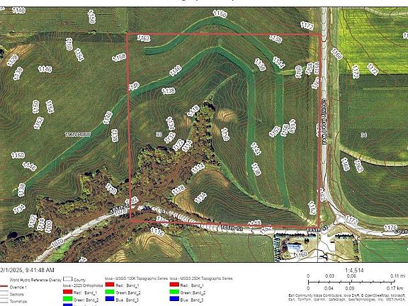 This 37.4 acre property in Winneshiek County consist of 31.82 acres of tillable ground and 5.58 acres of non-tillable ground consisting of timber. Located right along Co Rd W42, this has easy access to your crops. The average CSR2 for the whole property is 60.59. There are 14.28 acres of ground with a CSR2 of 80.00! Prominent soils is Downs Silt Loam. The topography is gently rolling. If you're looking to expand your farming operation you need to check this out. There are 2 more pieces of tillable ground adjacent to this one and a beautiful piece of pasture ground also for sale from the estate. Sellers will be reviewing any offers on February 14th, 2025.
