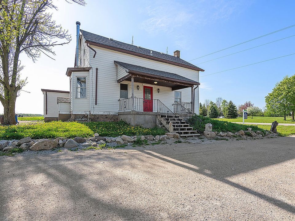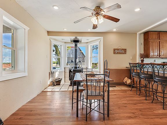 TODAY'S COUNTRY DEAL has been found! BRING YOUR TOOLBOX! Make it your own with finishing some things inside and out. Some items are done which include kitchen, flooring, main floor laundry bathrooms, and roof. No garage but room to add one and maybe even an extra one too! 1st-floor bedroom, living room w/French doors, laundry in kitchen area, wood stove in dining area to keep you warm all seasons long! Upstairs has 2 BRs, large landing area for a rec/game rm, closets and a dual entry full bath! Large 1st-floor BA updated. Being sold in AS-IS. Barns behind house not included, no easement