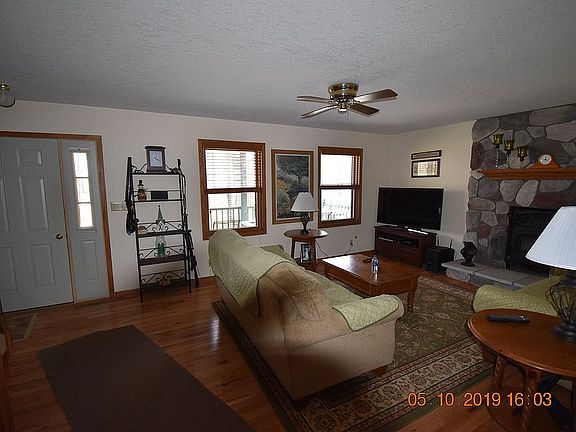 Large year round home. 4 beds 2 full baths with basement. newly renovated throughout. new AC, Furnace, appliances, well, hardwood floors, carpet and paint. we have approx. 1/4 mile of river frontage. 80 prime acres for Hunting . ATV trails. front and rear porches. front is a covered porch.