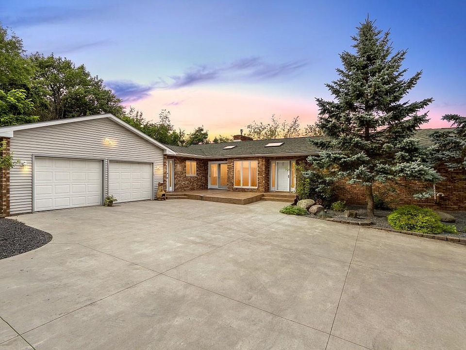 Follow a private tree lined driveway to a walk-out ranch nestled along a hillside overlooking your acreage. 20+ acres with a balance of woods and open land. Spacious open concept home with vaulted ceilings, 4 season room, master with master bath, main floor laundry/mudroom and a walk-out lower level. Attached 2.5 car garage, detached 2.5 car garage and a 30 x 55 pole building. Seller upgraded to include geothermal heat. There a walnut tree plantation with over 2000 trees. You will want to bring your walking shoes, stay a while, eat some berries and check out all the land has to offer including some spectacular views.