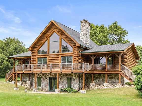 Stunning custom log home on nearly 13 secluded acres! Enjoy peaceful country living and watch wildlife from the front deck. Want a hobby farm, hunting land, or trails? This property offers endless possibilities. The 3-bed, 2-bath split-bedroom layout features wood floors, custom cabinets, knotty maple trim, and a primary suite with spa tub. Main-level laundry adds convenience. A loft overlooks the living area and A-frame windows. The massive stone wood-burning fireplace is the heart of the home. The unfinished walkout lower level with porcelain wood stove offers room to expand. Fenced backyard with large deck is ideal for relaxing or entertaining. Recent updates include a new roof and modern fixtures. Seller offering a home warranty policy thru Home Warranty Inc. Schedule today!
