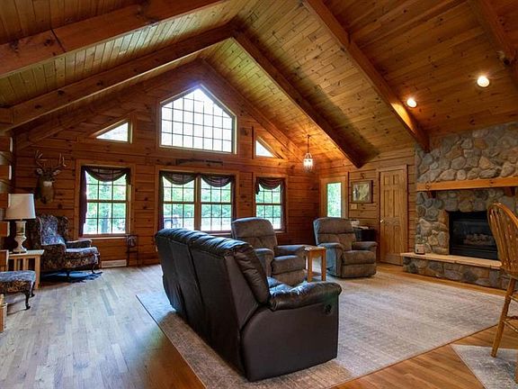 Must see Log Home!! 3 bedroom, 3 full bathroom with heated 2 car garage. Primary bedroom has 2 walk-in closets, patio door out to deck, on-suite full bathroom with shower and 2 person jetted tub. Imagine on a cold winter’s night walking up to that beautiful stone hearth, flipping the switch to the gas fireplace and cozying up on the sofa in that amazing open concept living room. Downstairs there is a family room/rec room that is ready for you to create your own living space, Bonus Room and Exercise room. Enjoy relaxing on the new maintenance free Trex composite deck installed this spring. New rain gutters were installed and the outside was stained in 2024. Backhall closet plumbed for an additional ½ bath. Zoned In-floor heat in garage, basement, backhall and bathrooms. Entire home has forced air heat and is A/C hook up ready. Short distance from Merrill and Wausau …yet off the beaten path to allow for a peaceful and private setting.
