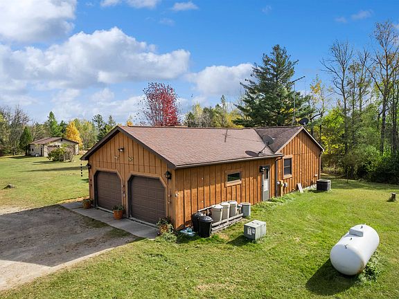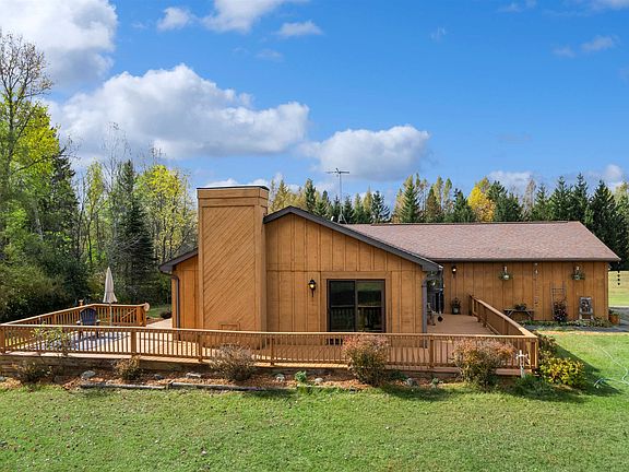 Beautiful 2 bed, 2 bath ranch home on breathtaking 14-acre property! This 1,198 sqft home offers single-level living with an open layout, a spacious primary ensuite, attached 2-car garage, and a full drywalled basement ready to be finished—plus one fully finished bonus room. Features include a wrap-around deck, large pond, spacious pole building, abundant wildlife, and additional electric hook-up and water spigot. Ideal for those seeking peace, privacy, and room to roam! Seller will review all offers Sunday, Oct. 26 at 1:00pm regardless of binding acceptance. Don't miss this opportunity! Call today to schedule your private viewing!