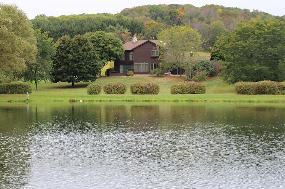 Piece of Paradise, this Contemporary estate has it's own 2+AC Springfed pond hidden on 11+ wooded Ac. Vaulted ceiling with 2-way stone firepl,spectacular views from every window of shimmering water &woods with winding trails &private beach. Kitchen sized for entertaining with island, opens into dining &sunrm. Stamped patio with firepit &spacious deck. Mastersuite has whirlpool, separate shower &walk-in closet. 3c attached has heat, water& dog kennel w/run. LL Plumbed for bth and potential living.The open concept feel with majestic firepl and water views sets this country property apart from most.