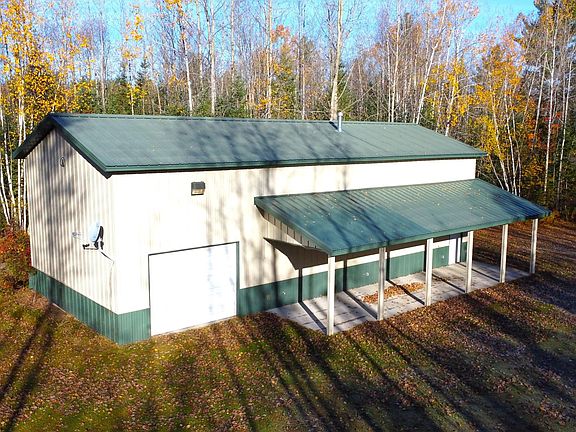 Look at this wooded 6.38 acres, privately setback off the road with a 24x56 building that is insulated and finished inside. The building features 16' walls, 14' garage door, 10' covered overhang, 200amp electric panel, well, pressure tank, bathroom hookups and is plumbed for in-floor heat. There is a drilled well and a septic system on site, along with RV electric and sewer hookups. This building could easily be converted into living quarters or used as added storage. The property is located on the ATV, UTV, snowmobile trails, and is within walking distance to Turtle Lake. If you are looking for a place to build a home, cabin, or even park your camper at, you will not want to miss out on this prime location.