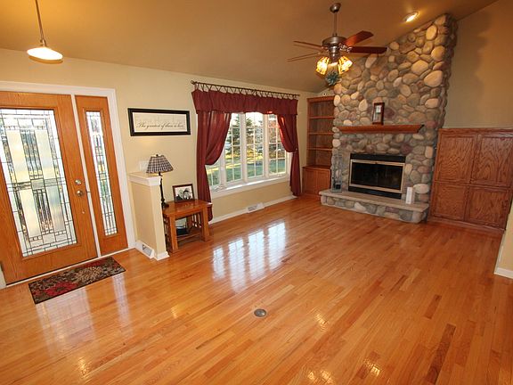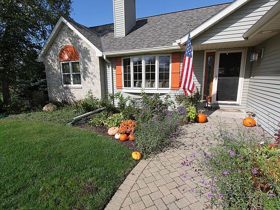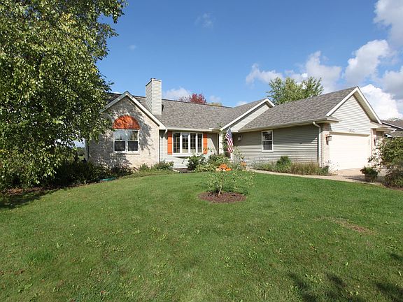 2004 Ranch Home in wonderful conservation subdivision where nature abounds along the walking paths and wildflower prairies. Home offers great room with vaulted ceilings, hardwood floors, river rock natural fireplace, leaded glass front door, stain glass ceiling fan and patio door that leads to deck and backyard. Walkout basement with 9' patio door, 7 full light windows, framed for 4th bedroom and plumbed for 3rd full bathroom. Additional features include recessed lighting, painted trim/molding, large kitchen island, pantry, 3 car garage, small apple orchard and perennial gardens adorn entire property. First time ever offered for sale. Call to schedule tour...
