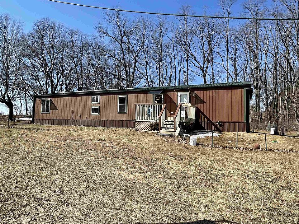 1992 Single Wide in the county now for sale. Was a 3BR -seller wanted a larger room and made into a 2BR mobile. Could easily go back as a 3BR if needed. Home's outside and inside was remodeled in 2012. There is a drilled well and mound septic. Nice tub surround and many other upgraded features. Home sits on the corner of Emerson and Cemetery with an edge of nice woods along the back of it. Front wood deck/entry built to access home nicely and watch the wildlife. Berry bushes, an area to garden and back deck are some other features that this property boasts. A few miles East from the City of Mauston