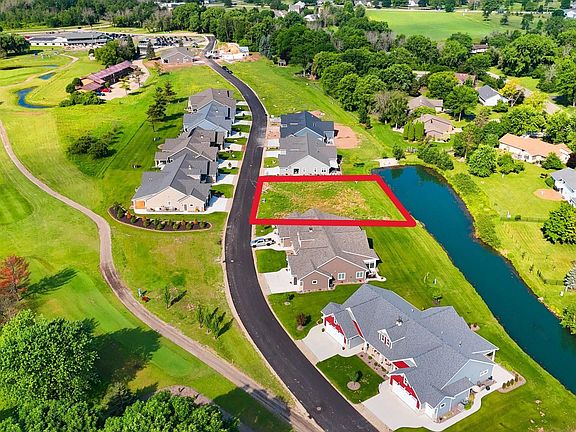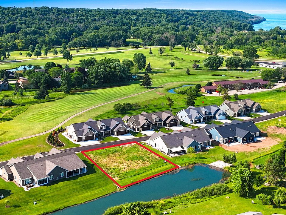 One of two remaining waterfront lots (17-18) on the newly paved Cottage Lane, where golf carts are legal and encouraged! Zero-entry duplex lot in The Cottages at High Cliff Subdivision, an age 55+ golf/retirement community adjacent High Cliff Golf Course that's filling up quickly. Completed Cottages feature high end finishings throughout (cathedral ceiling, large fireplace, granite countertops, golf cart garage); builds starting at $299,900. HOA dues ($255/month) include lawn maintenance, snow removal, trash/recycling pickup and a lifetime senior-couples golf membership to High Cliff GC. Location provides easy access to the expansive Village of Sherwood and High Cliff State Park trail systems.