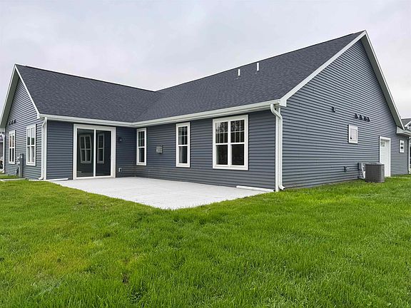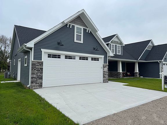 Left side of zero-entry duplex under construction in The Cottages at High Cliff Subdivision, a young age 55+ golf/retirement community adjacent High Cliff Golf Course. 7/15 completion. Situated on Lot 13, one of the largest lots in the subdivision, this unit features high end finishings throughout (cathedral ceilings, open stairway, large fireplace, granite countertops, finished garage, egress window, oversized patio), large rear sunroom, a unique Cottages feature, and a pond view. Cottage Ln is now paved! HOA dues ($255/month) include lawn maintenance, snow removal, trash/recycling and a lifetime senior-couples golf membership to High Cliff GC. Location provides easy access to the expansive Village of Sherwood and High Cliff State Park trail systems. Update: yard/landscaping installed!