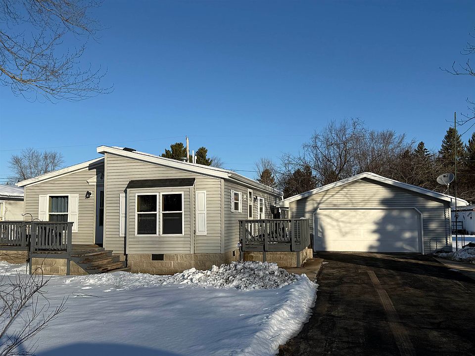 Cozy and convenient 3-bed, 2-bath manufactured home with easy one-level living! The primary suite features an attached full bath, while the third bedroom is currently set up with washer/dryer hookups. Enjoy a spacious 2-car garage plus a bonus 16x20 garage with a concrete floor and electric. Appliances included! Relax in the lovely yard with mature shade trees. Major updates in 2022: water heater, furnace, and central air. Move-in ready!