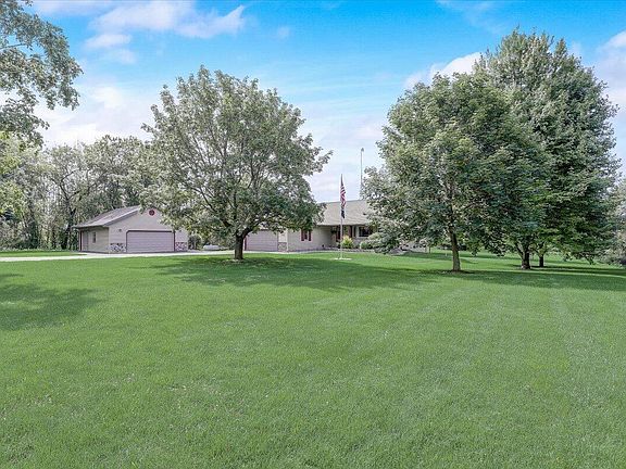 Country living at its finest! This one owner custom built home checks all of the boxes! Step inside this well maintained home and the vaulted ceiling and the wood burning fireplace in the great room will greet you, and the kitchen/dining area will make entertaining a breeze! The owner's suite boasts views of the captivating property. And that's not all, head downstairs and there's plenty more living space with the 4th bedroom, 3rd full bath, laundry room, office area and rec room. Plus storage and a workbench! The detached garage and garden shed make storing those toys convenient. Enjoy your morning coffee from the deck off of the dining area while taking in the beauty of the 5+ acres and two ponds, and check out the tree house! These thoughtful sellers have made this property shine!
