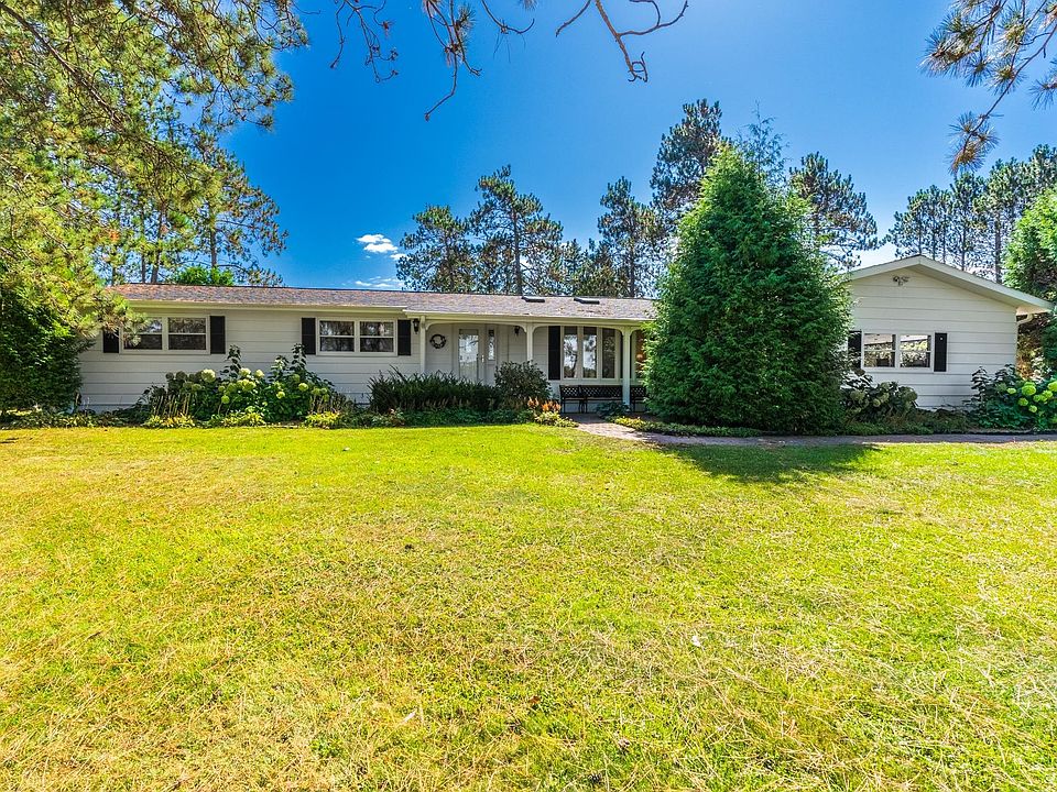 This spectacular ranch home offers both comfort and convenience, just 25 minutes from downtown Wausau. Set on over an acre of land, it includes two lots—one with the home (0.54 acres) and an adjacent 0.47-acre lot. The original owner's pride is evident in the attention to detail and beautiful landscaping, complete with a paver driveway leading to the open-concept living space. The light-filled living room boasts vaulted ceilings, skylights, and a large bay window. The dining area, with its own bay window, seamlessly connects to the living room and kitchen, which features ample cabinets, a pantry, and space for a breakfast nook. Down the hall, find two bedrooms with large closets, a full bath, and a master suite with his-and-hers closets, big windows, and an ensuite with a walk-in shower. The family room has a wood stove and patio doors leading to the serene backyard. The lower level offers a mother-in-law suite or rental with a full kitchen, family room, bedroom, bath, and laundry.