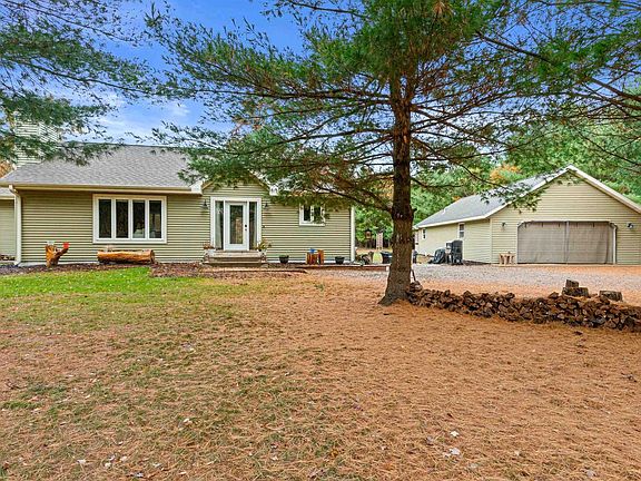 Secluded wooded acreage offers privacy and nature with a boat slip and pier just across the street to Lake Petenwell! Enjoy main floor living with vaulted ceilings, a cozy fireplace, and screened-in porch perfect for peaceful mornings. Includes a full apartment/in-law suite! Unwind by the outdoor firepit after a day of adventure. Property is a quick drive to Sand Valley Golf Resort, Northern Bay, and the interstate. Explore nearby 3,000 acre wildlife refuge, ATV and snowmobile trails. Ideal year round getaway or full-time home with endless outdoor recreation and lake life at your doorstep!