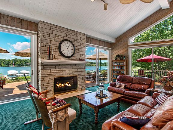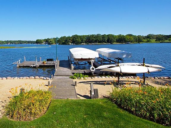 Enjoy fabulous lakeviews from virtually every room of this 6 BR shake style contemporary on 106' lvl frntg w sand beach. Prof landscaped w perennial gardens, recirc waterfall, and expansive lakeview decks creates a grand outdoor entertaining space. Dual Master Suites w priv lakeview balconies + 4 guest BR's are ideal for Two Family purchase. Interior decor is open and bright featuring a whitewashed, paneled great rm w soaring stone FP and custom bar along w gourmet kitchen and dinette overlooking the lake.