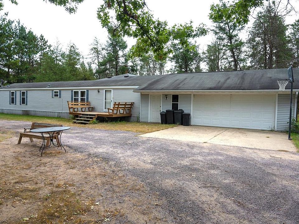 You will be amazed at the size of this single wide manufactured house! Over 1,800 sq ft of living space. The original house is 16x70 with 24x28 addition & 9x9 sunroom. It features 3 bedrooms, 2 full baths, office/den (no window), large family room, large dining room, eat in kitchen & sunroom. Attached 32x25 garage with opener. 12x15 storage shed with loft. Circle driveway for easy access. Small portion of the driveway is shared with west neighbor. Only 1.5 miles away from access to Yellow River for great fishing, kayaking & canoe. Sandy beach & boat launch on Castle Rock Lake 5 miles away. Located on ATV route to access miles & miles of trails. Snowmobile near by. With some TLC & elbow grease this could be a great full time residence or vacation get away. "As is" sale to settle an estate.