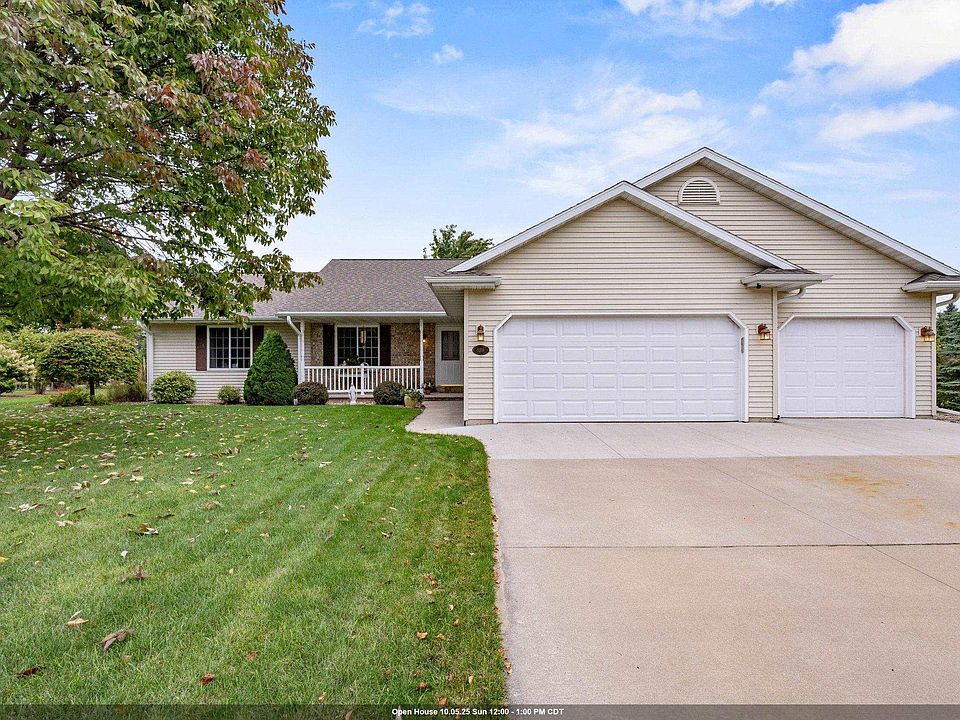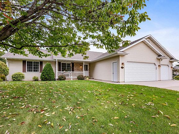 This meticulously maintained & conveniently located 4-bed, 2.5-bath ranch offers a unique & functional layout. Upon entering you are greeted by vaulted ceilings creating an open feel, along with beautiful engineered hardwood! The spacious primary suite features a walk-in closet with custom oak shelving & private ensuite. Main floor laundry adds everyday convenience, while the expansive lower living room with a cozy gas fireplace provides the perfect space for entertaining or relaxing. The 3.5-car garage offers ample storage. Step outside to enjoy a beautifully landscaped backyard complete with a patio, fire pit, garden, & storage shed. Major updates include a newer roof, gutters, downspouts, water heater & garage doors. Make sure to check out this move-in ready home!